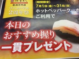 ホットペッパークーポンをご利用で、本日のおすすめ握り1貫をプレゼントしちゃいます!