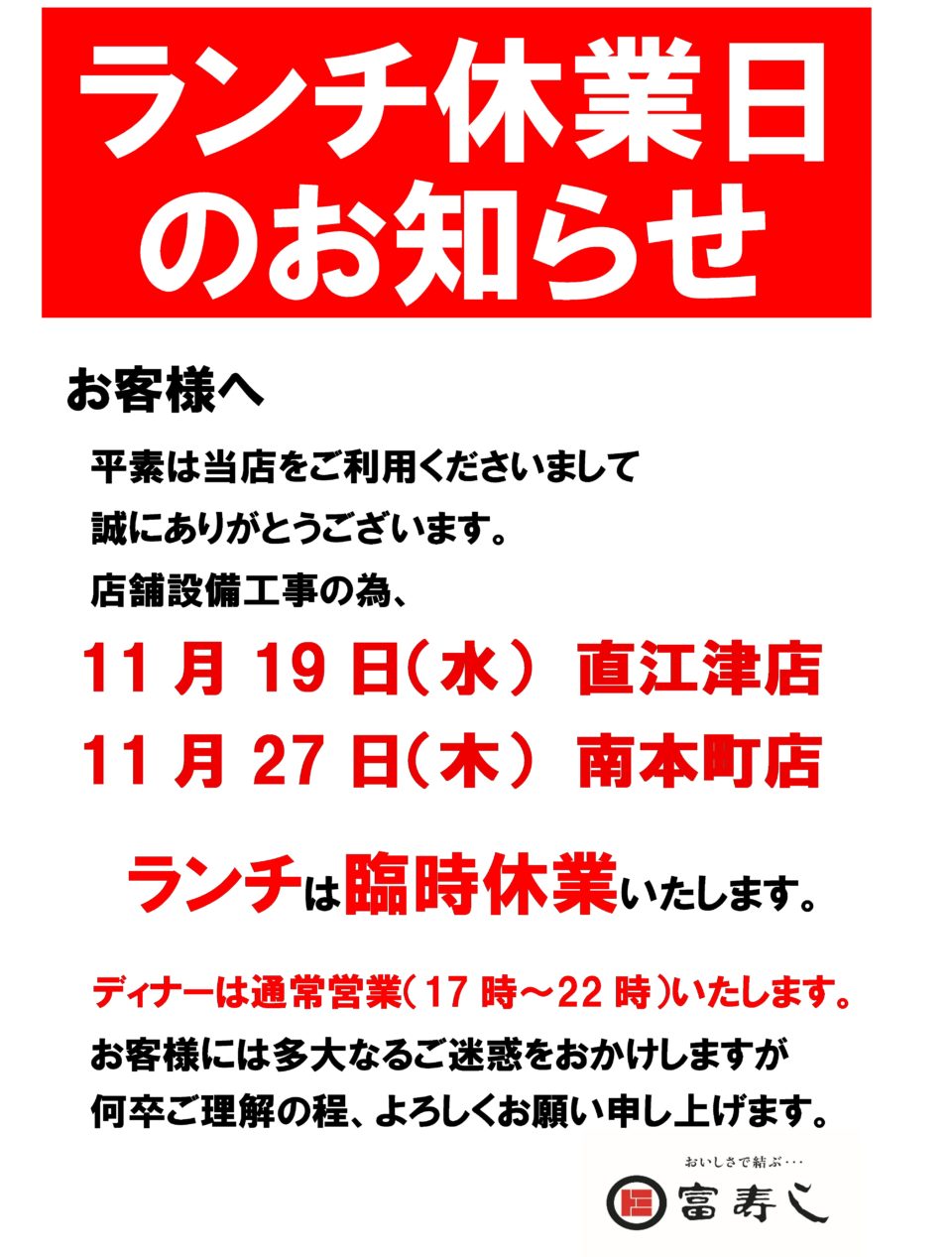【富寿し直江津店/南本町店】ランチ臨時休業のお知らせ