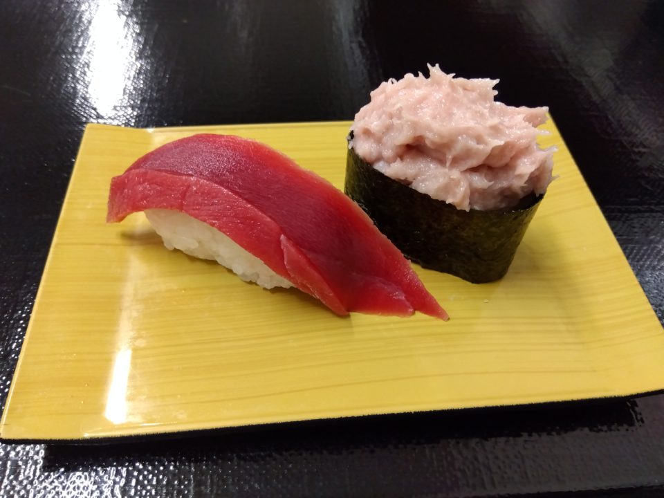 本マグロ赤身とろ軍艦2種  572円