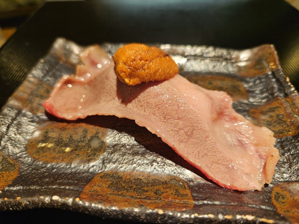 村上牛にぎりに濃厚なうにをのっけました(^^♪