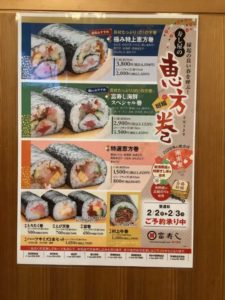 2月、3日恵方巻のご予約承ります。