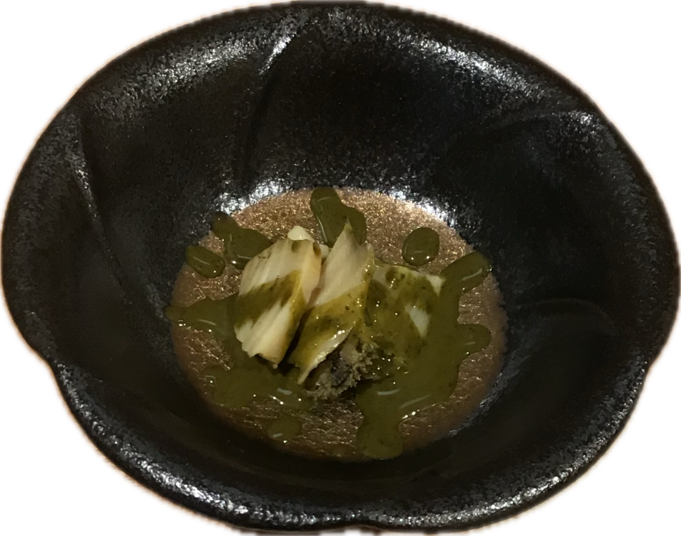 ・鮑に肝ソースがかかっていて、最初は鮑をお楽しみいただいた後、