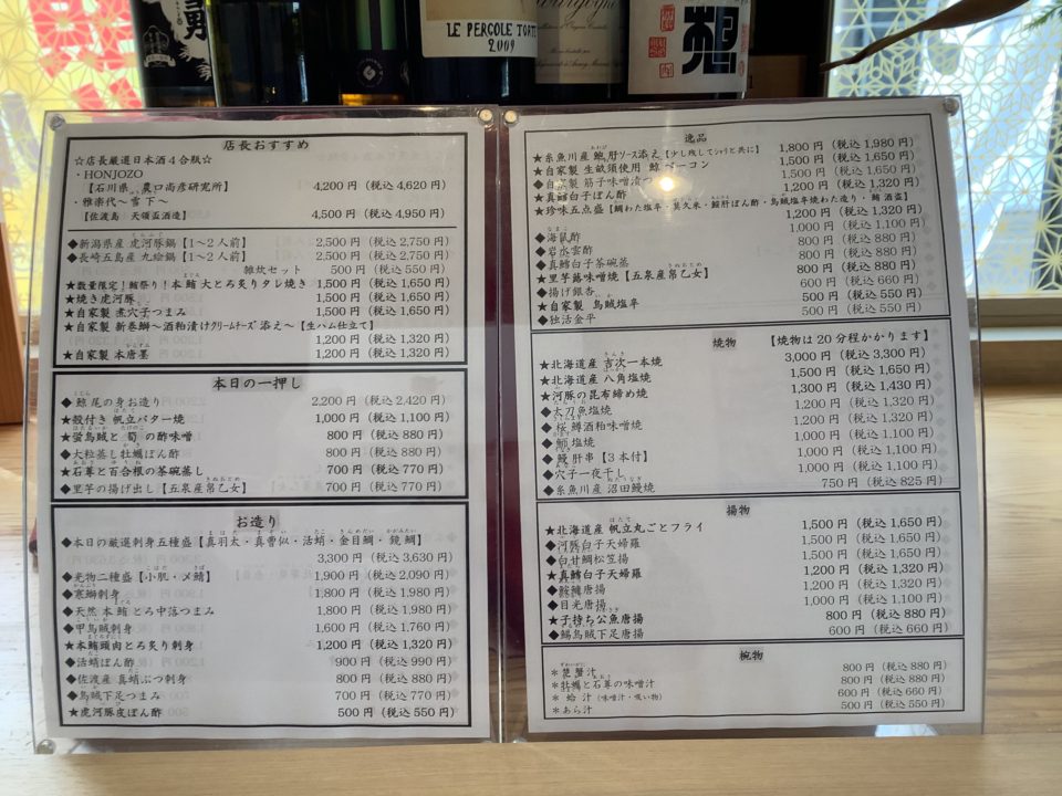 板前が厳選し、旬の食材を使った高田駅前店でしか味わえない数々のおすすめ商品。