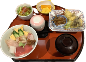 似鱚チ-ズ入り天婦羅・茶碗蒸し・サラダ・フル-ツ